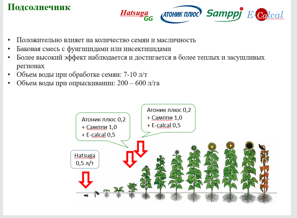 Большее количество генеративных стеблей, улучшает завязываемость семян у подсолнечника, кукурузы; увеличивает натуру зерна (урожайность);